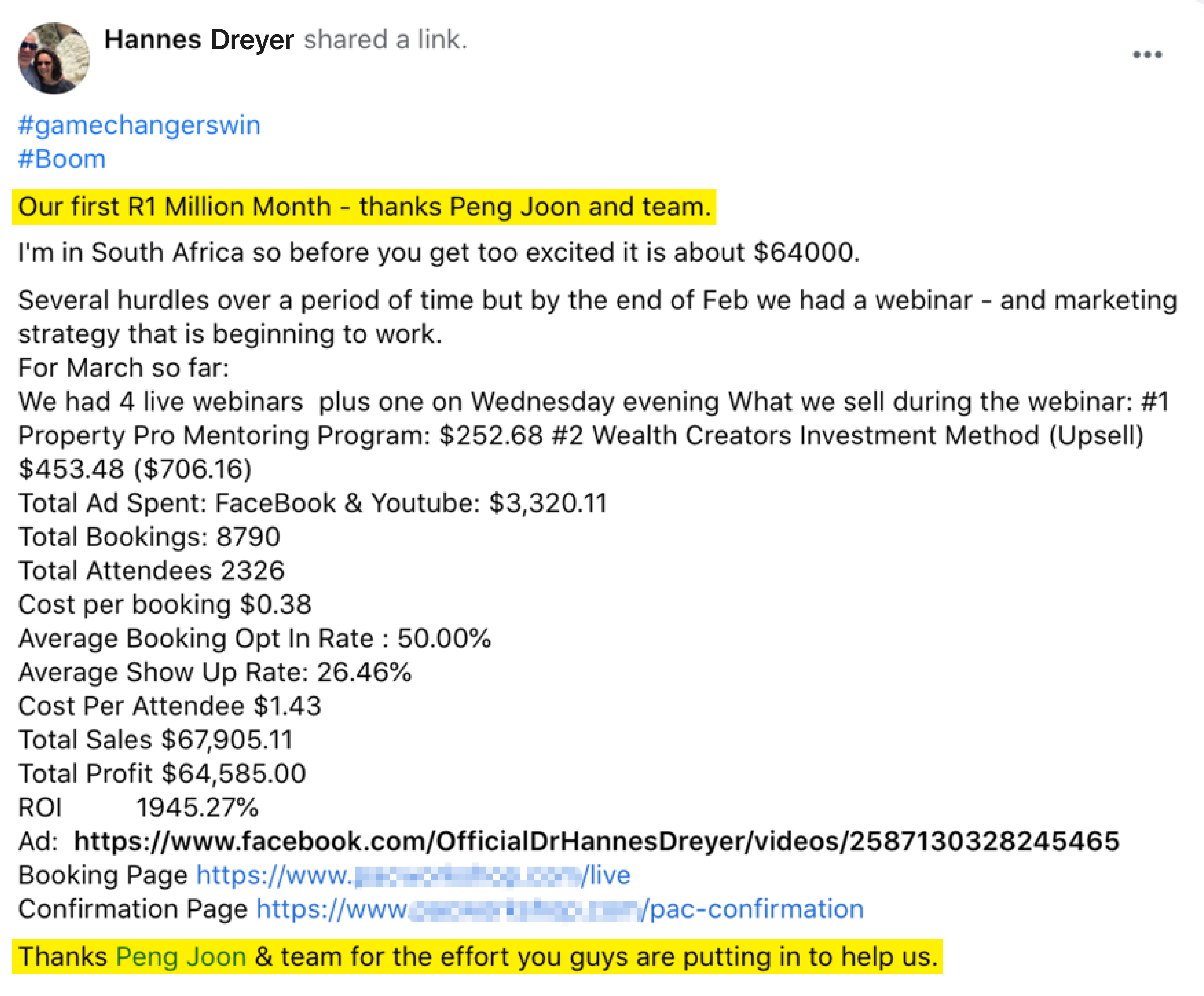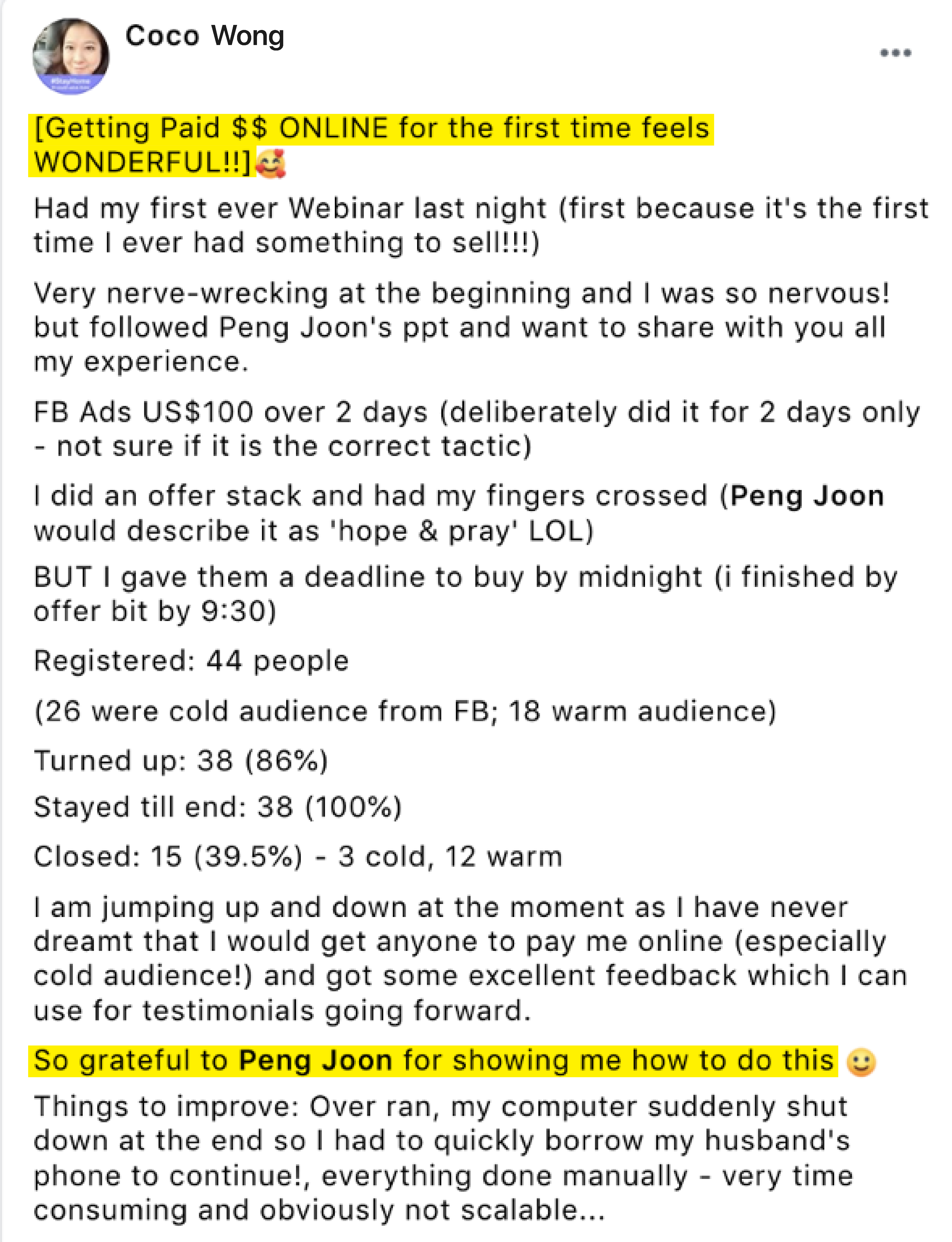 "After training with Peng Joon, I have learned how to monetise my brand, I have greater clarity on what direction I'm heading, and my business has been transformed and multiplied because of Peng Joon."