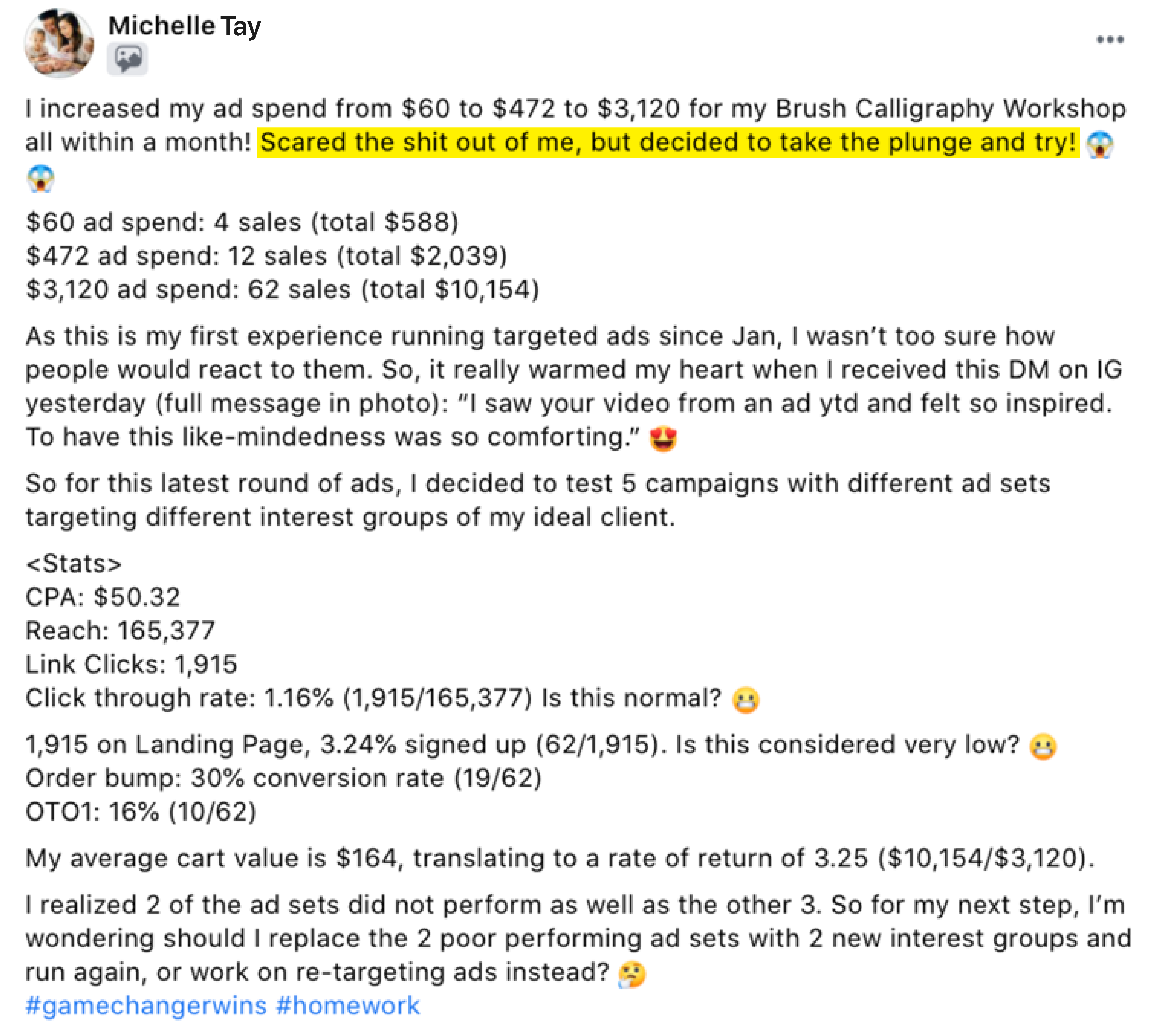 Get on a call with my traffic team to do a deep dive into your traffic campaigns. They will look at your setup, tracking, ad copy, images, and give you insights on what you can be doing to profitably scale your campaigns or reduce cost per lead. These are the same people who have managed millions of adspend for me.