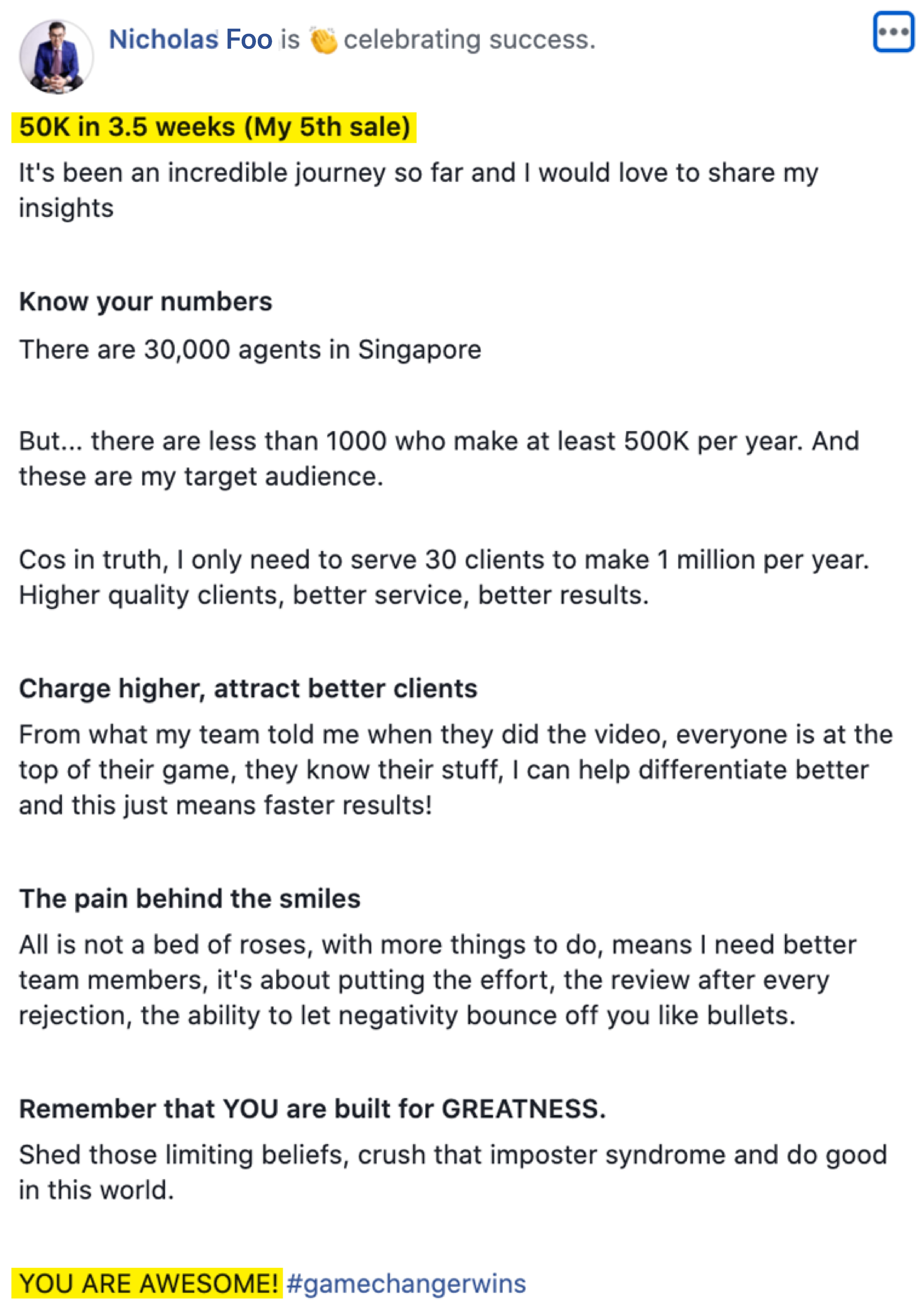 Peng Joon will get a 1:1 onboarding & strategy call with you. Based on the questionnaire that’s answered, he will identify the easiest ways to achieve your goals over the coming 52 weeks.