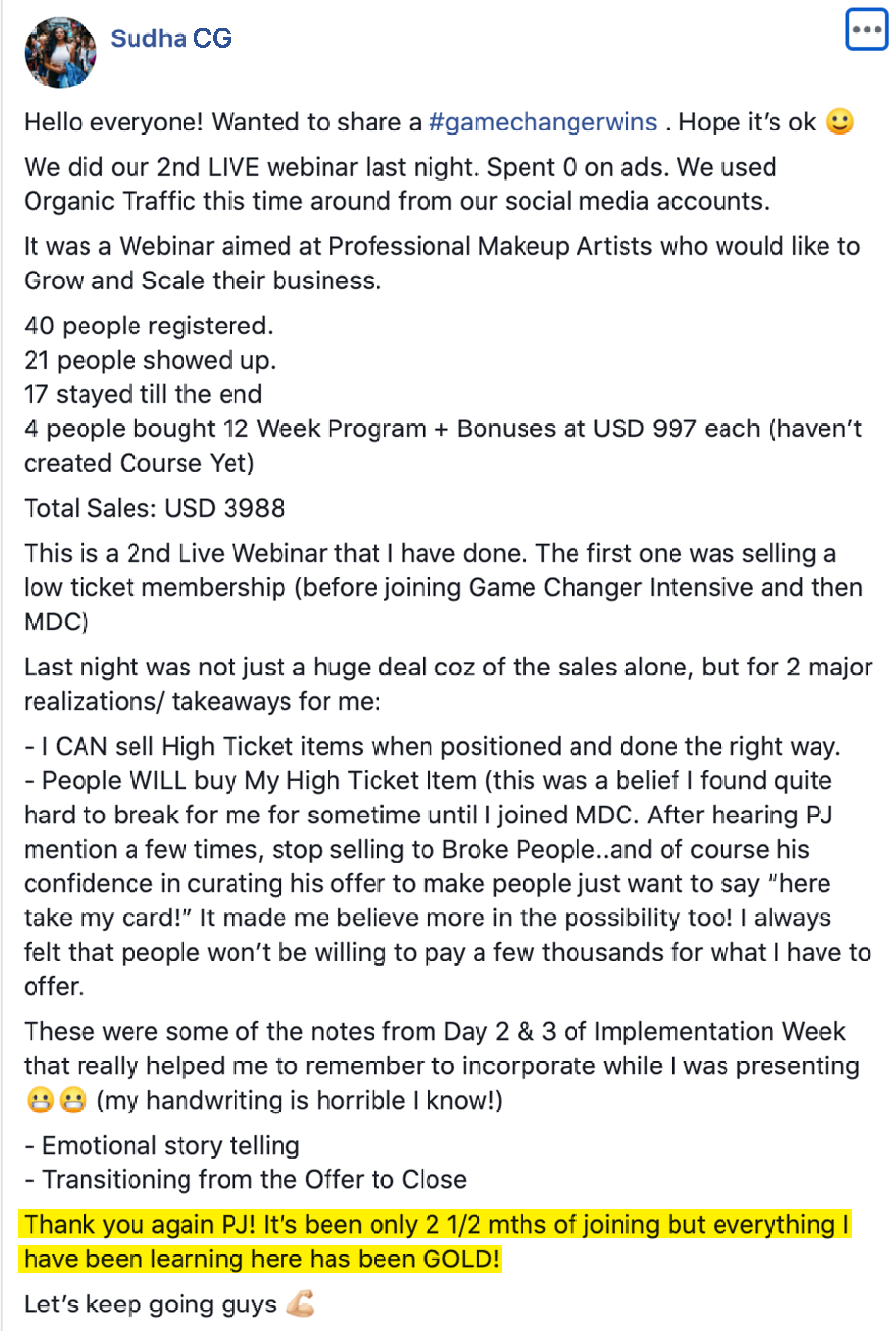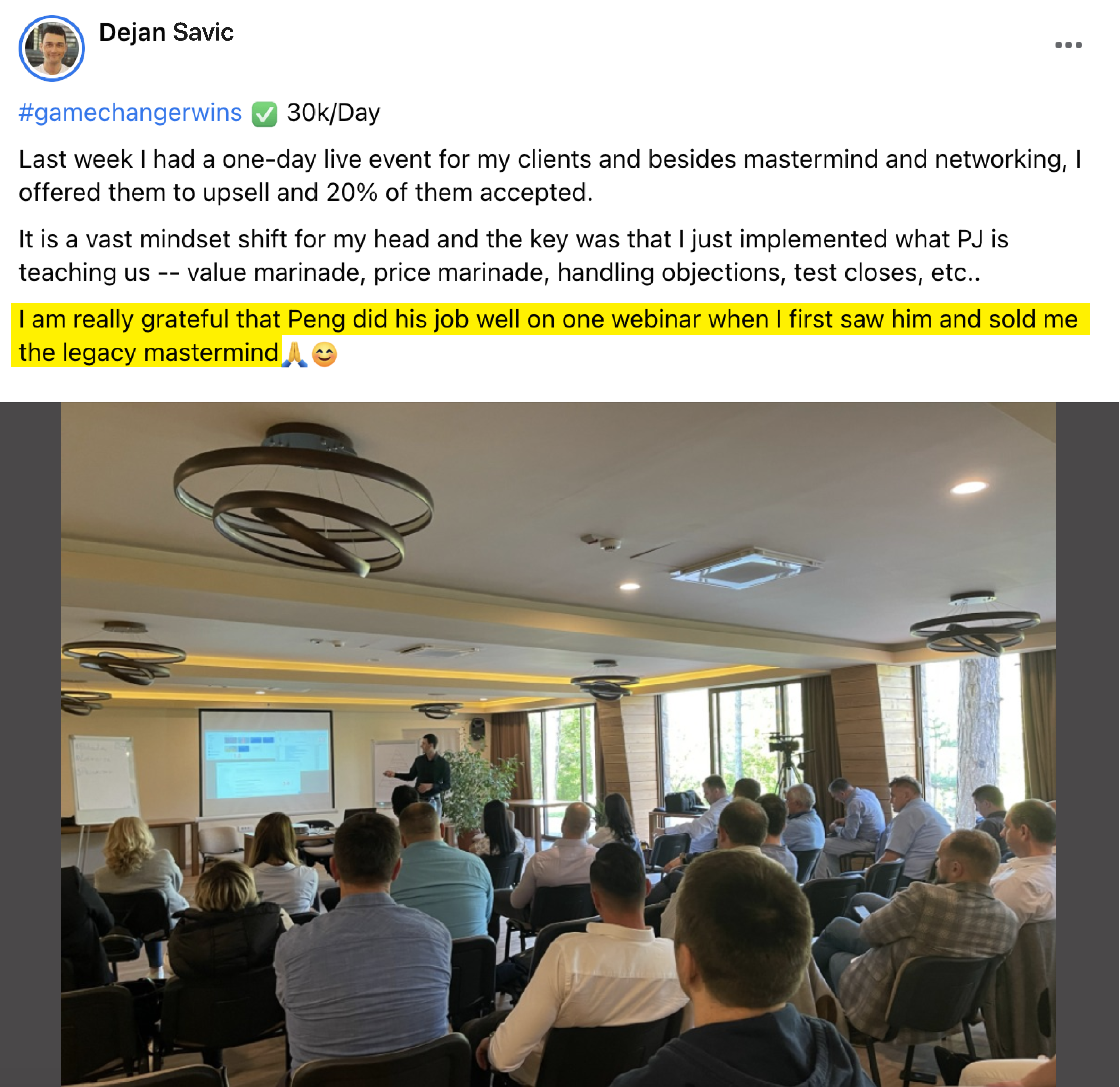 We will reveal your call with Peng Joon and create a 12 month roadmap document that will act as your guide over the course of the mastermind. You’ll also receive your immediate action steps, which can often lead to instant results.