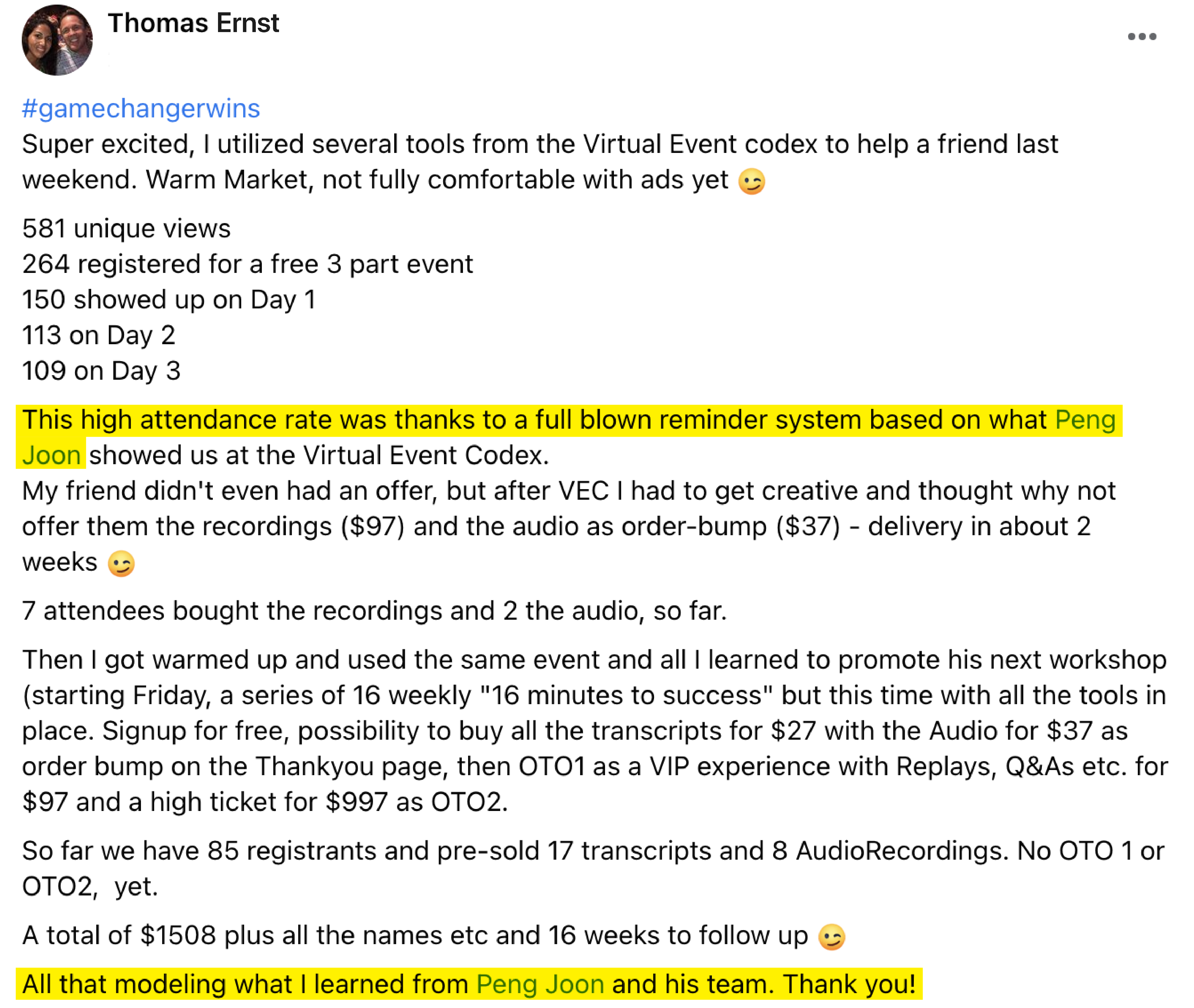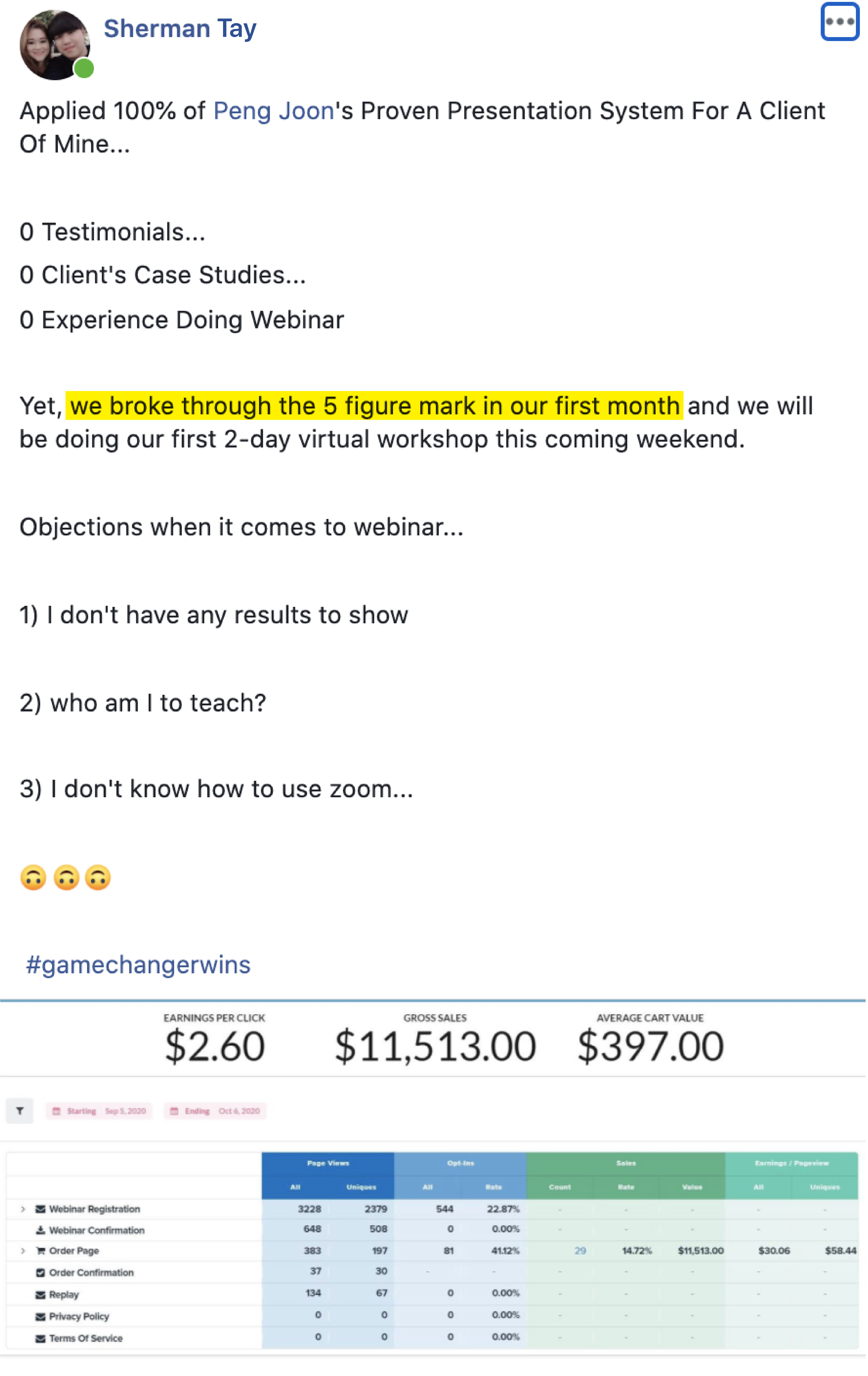 Join Peng Joon every week for the next 52 weeks in a group setting to work on your offers, funnels and traffic. Submit for hotseats so that Peng Joon can take a deep dive into your campaigns. Every week you will be learning something new, apply and implement so that you constantly have clarity on what to do the following week.